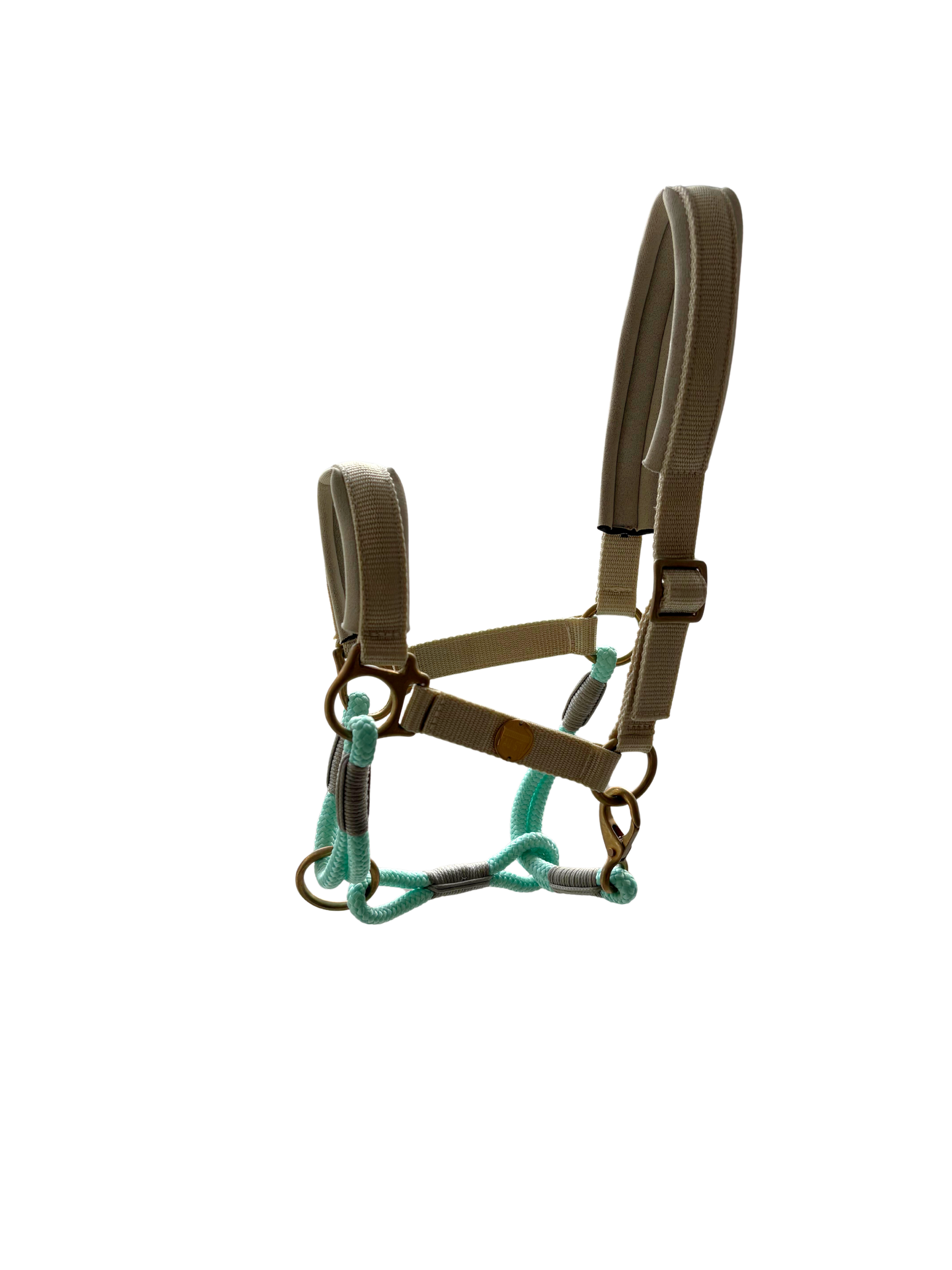 Halfter mit Schiebeschnalle – sand.mint.taupe – Messing – Gr. Pony