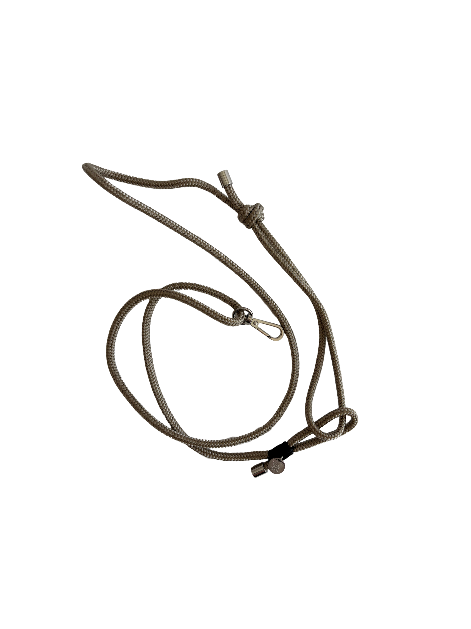 Handytau mit Karabiner und Inlay – taupe.tiefschwarz – Silber